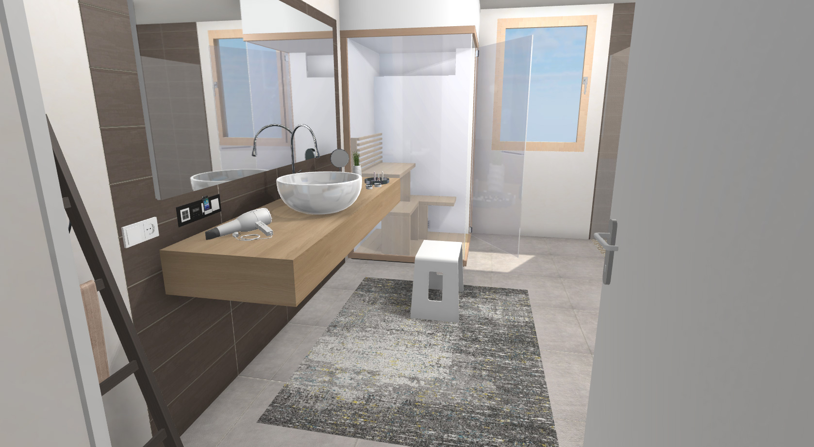 Die 3D-Badplanung mit Käferstein Innenausbau – Ihrem Spezialisten für stilvolle, hochwertige Wohnlösungen in Nürnberg – berücksichtigt alle Armaturen, Möbel, Licht- und Gestaltungselemente und setzt Ihre Ideen präzise um.